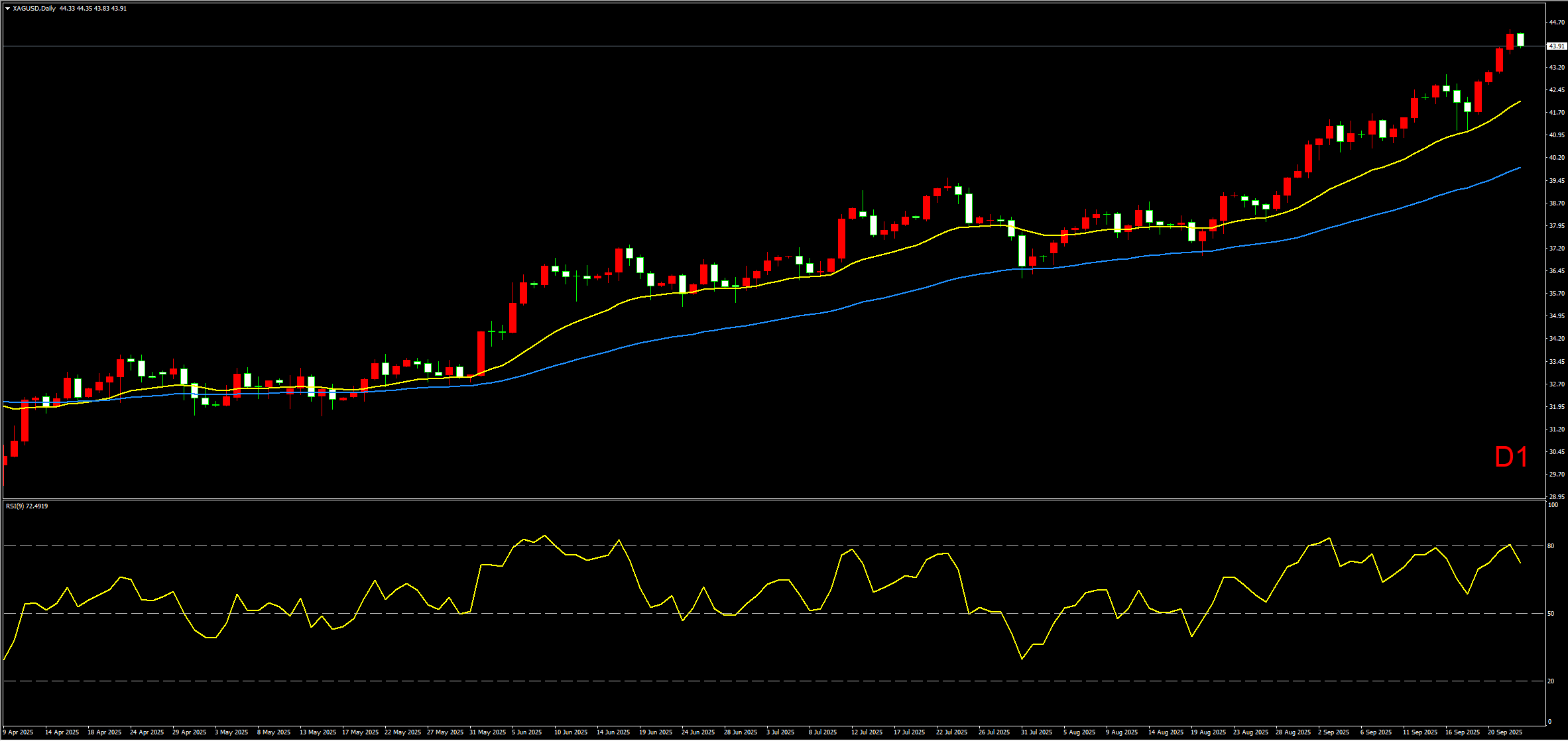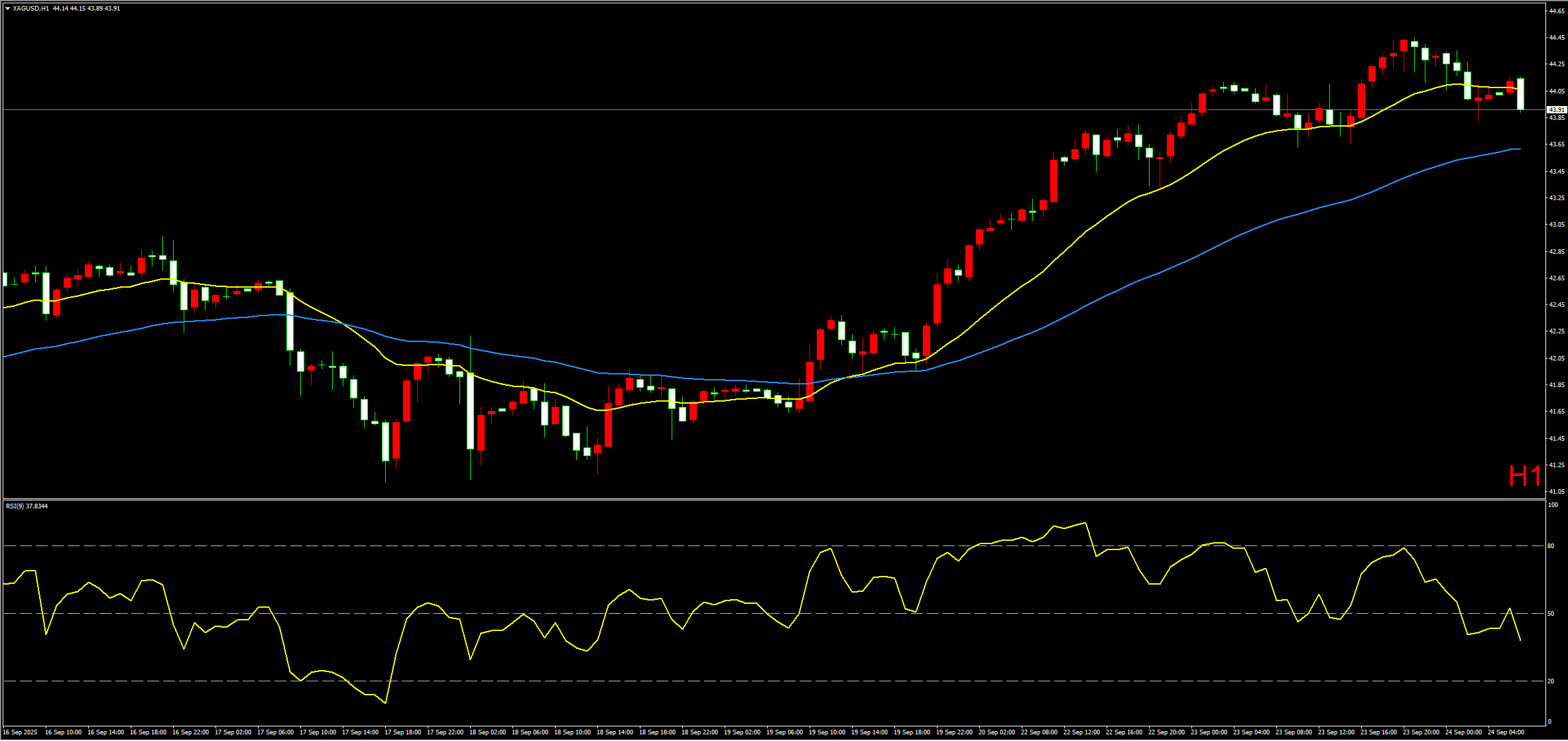 小时图上,昨日白银同样在回踩20EMA均线支撑后,继续强势走高,最高摸到44.45附近,不过,随着时间进入美盘阶段,白银逐步震荡回落,最终转为围绕20EMA均线上下震荡形态。短线形态上看,白银的RSI指标同样也有顶背离形态出现,短线银价或将转为震荡收敛形态,且有主动向下回踩60EMA均线的可能,因此在操作上建议,先以高抛为主,低吸为辅的震荡操作。