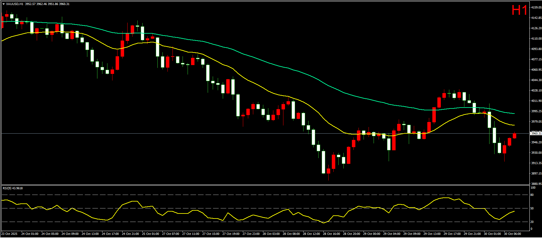小时图上,昨日黄金一度围绕20EMA均线横盘震荡,直到欧盘阶段,金价加速上攻,一举突破60EMA均线。不过随着随着逐步靠近美联储会议时间,金价逐步震荡回落,一度在会议前回到均线下方,最终因鲍威尔鹰派降息,导致黄金大幅跳水走低,重新回到4000美元下方。短线形态上看,黄金强势反弹预期被打破,短线或将陷入围绕4000美元震荡收敛走势,等待更多数据刺激再选择方向。因此在操作上建议,先以高抛低吸震荡操作为主。