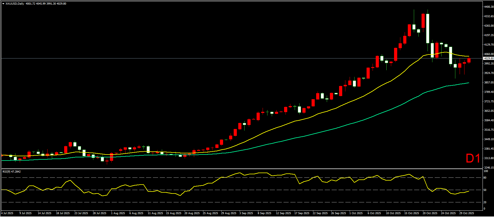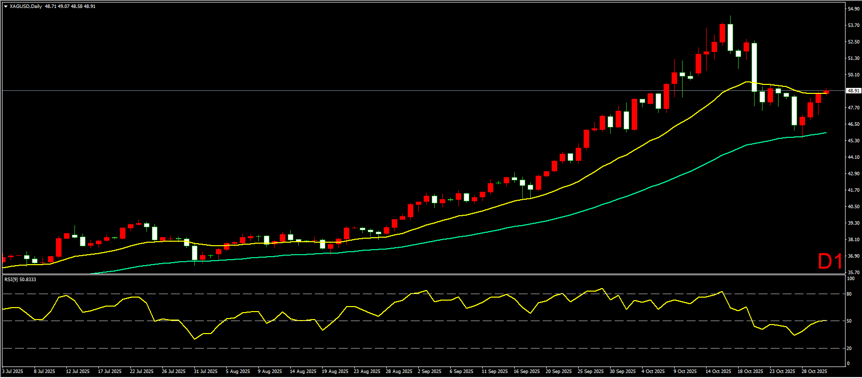 昨日,虽然美联储鹰派降息,但股市下跌提升市场避险需求,令黄金在昨日震荡反弹,日线收长下影小阳线,将原本降息后的阴吞阳形态修复。整体走势上看,美联储降息落地,金价继续保持两条均线之间震荡,短线黄金多头力量并不强劲,且临近11月月初,理论上将公布非农数据,预计市场短线交投将较为谨慎,金价或继续保持震荡收敛走势。