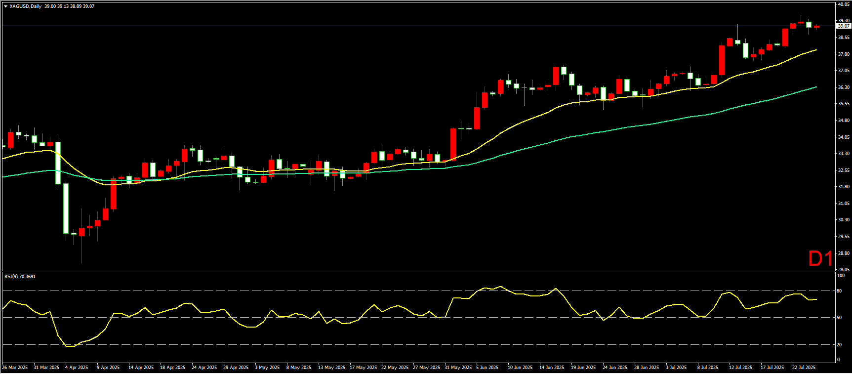 昨日,受美国经济数据影响,市场对美联储降息预期再度减弱,美元小幅反弹,黄金震荡回落,日线收长下影阴线,回踩60EMA位置。整体形态上看,黄金在6月中旬的高点位置附近遇阻回落,在盘面中形成三个顶部,底部在不断抬高,整体上呈向上震荡收敛的形态,对多头依旧有利。短线若金价能坚守20EMA均线支撑,则后市黄金仍有望继续冲高,且突破历史高点的概率大增。在操作上建议,关注小周期形态,先以高抛低吸震荡操作为主。