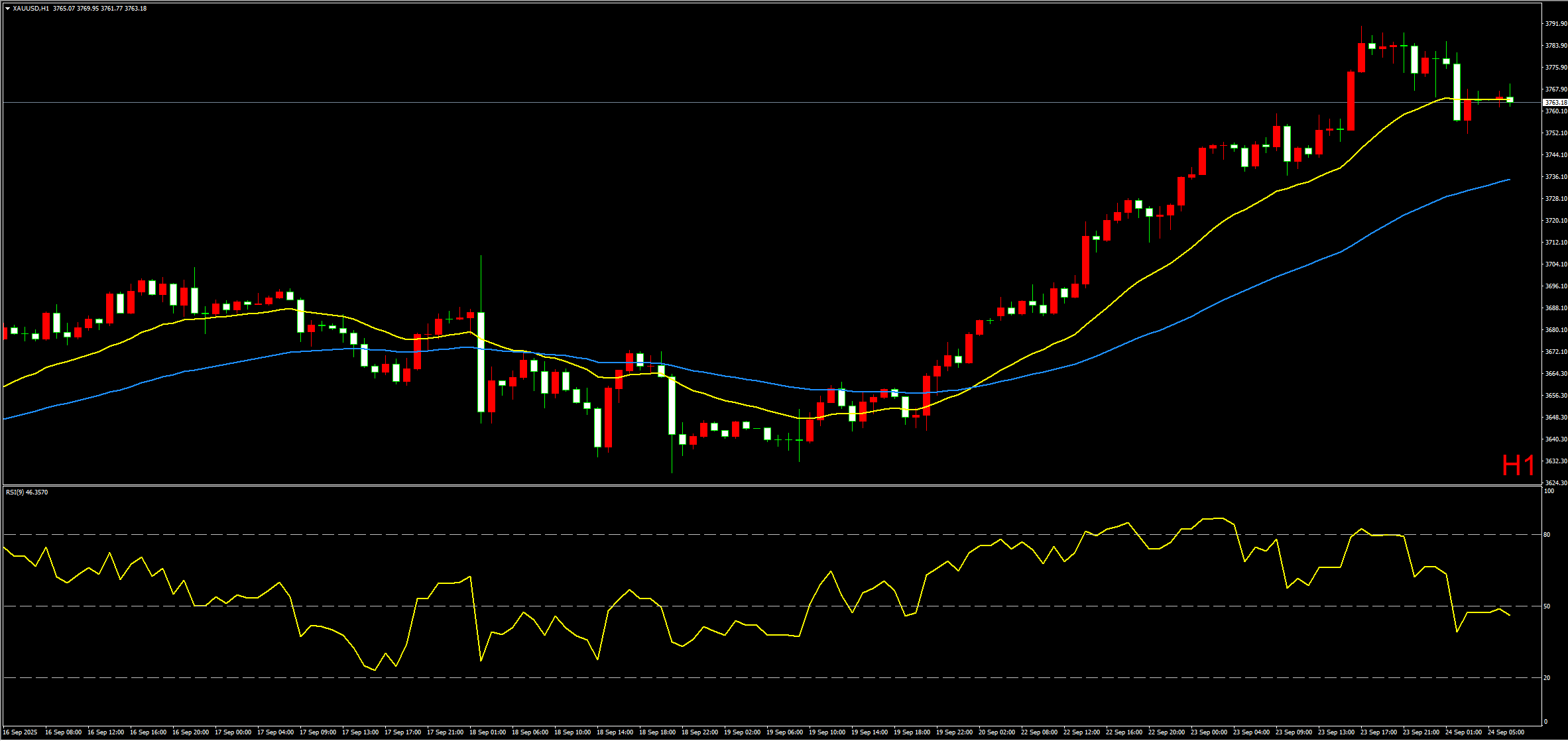 小时图上,昨日黄金在亚盘阶段一度震荡横盘,待20EMA均线上跟后,金价加速上攻,最高摸到3790附近,但随着进入美盘阶段,金价震荡回落,重新回到20EMA附近横盘。短线形态上看,昨日黄金冲高回落后,RSI指标有顶背离形态出现,若今日不能快速回到3777上方,则金价或将围绕20EMA均线震荡,甚至主动向下回踩60EMA均线。因此在操作上建议,金价短线在3777下方时,先以高抛为主,低吸为辅。若站上3777一线,则继续保持低多操作。