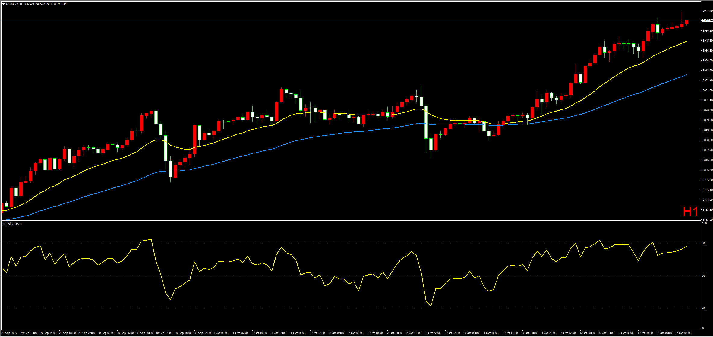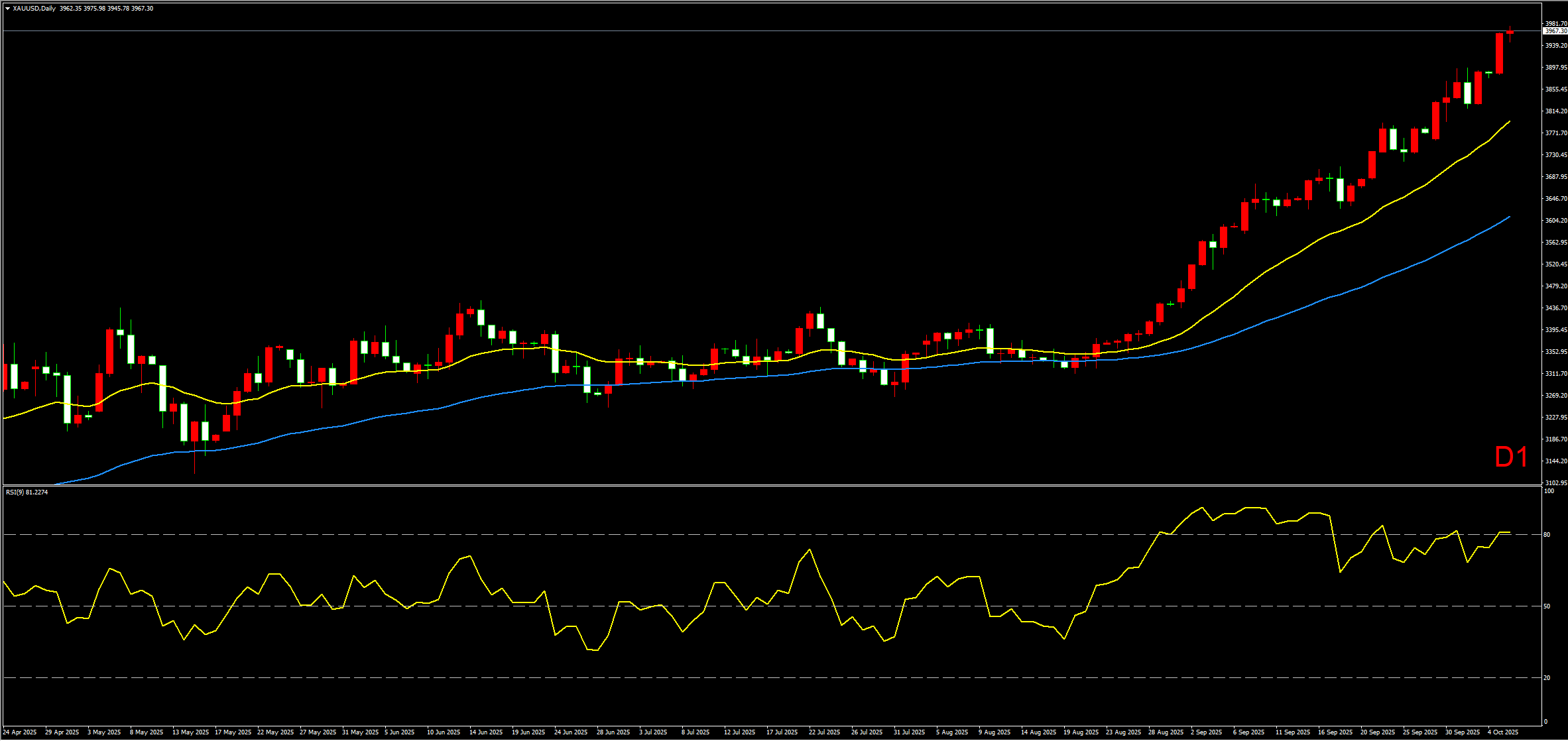昨日,黄金如期延续多头走势,强势突破3900整数关口,日线收较为饱满的大阳线。整体走势上看,黄金持续震荡走高,RSI指标已钝化,短线趋势转变以均线作为关键信号,只要不跌破20EMA均线,整体多头趋势就仍有望延续,因此在操作上建议,继续以逢低做多为主。