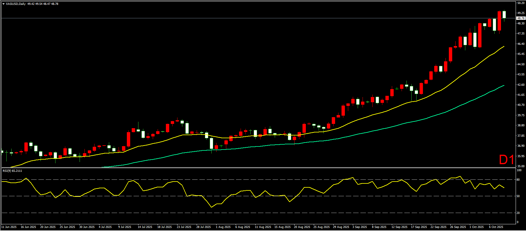 昨日,受美国政府继续关门影响,黄金日内如期继续强势上攻,直接突破4000美元大关,一度逼近4100美元,日线收带较为饱满的大阳线。整体形态上看,黄金继续强势走高,日内几乎涨幅接近100美金。不过,尾盘金价有所回落,目前日线呈带上下影的阴线形态,有回踩4000点整数关口的动作。预计日内先以高位震荡为主,等待均线上跟后再继续走高。
