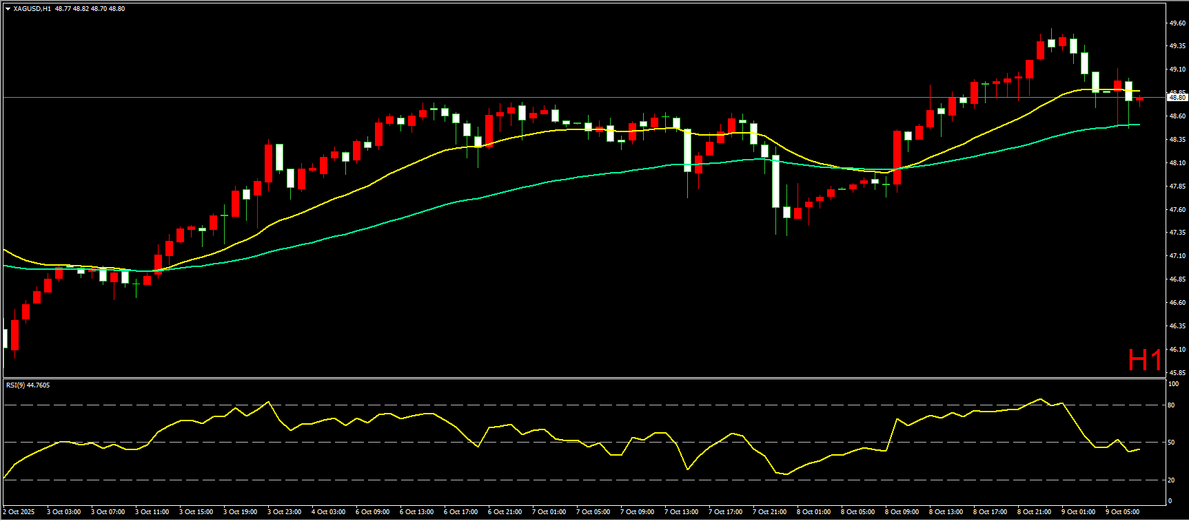 小时图上,昨日白银在亚盘阶段一度强势突破均线压力,将前日偏空形态扭转,并由此一路震荡走高,再度刷新前期高点,最高涨至49.54附近。不过随着进入隔夜市场,白银跟随黄金快速回落,目前也跌破20EMA均线,完成对60EMA均线位置的回踩动作,预计日内先以围绕20EMA均线震荡为主,若失守60EMA均线,则白银或将考验47.40一线关键支撑。因此在操作上建议,先以高抛低吸震荡操作为主。