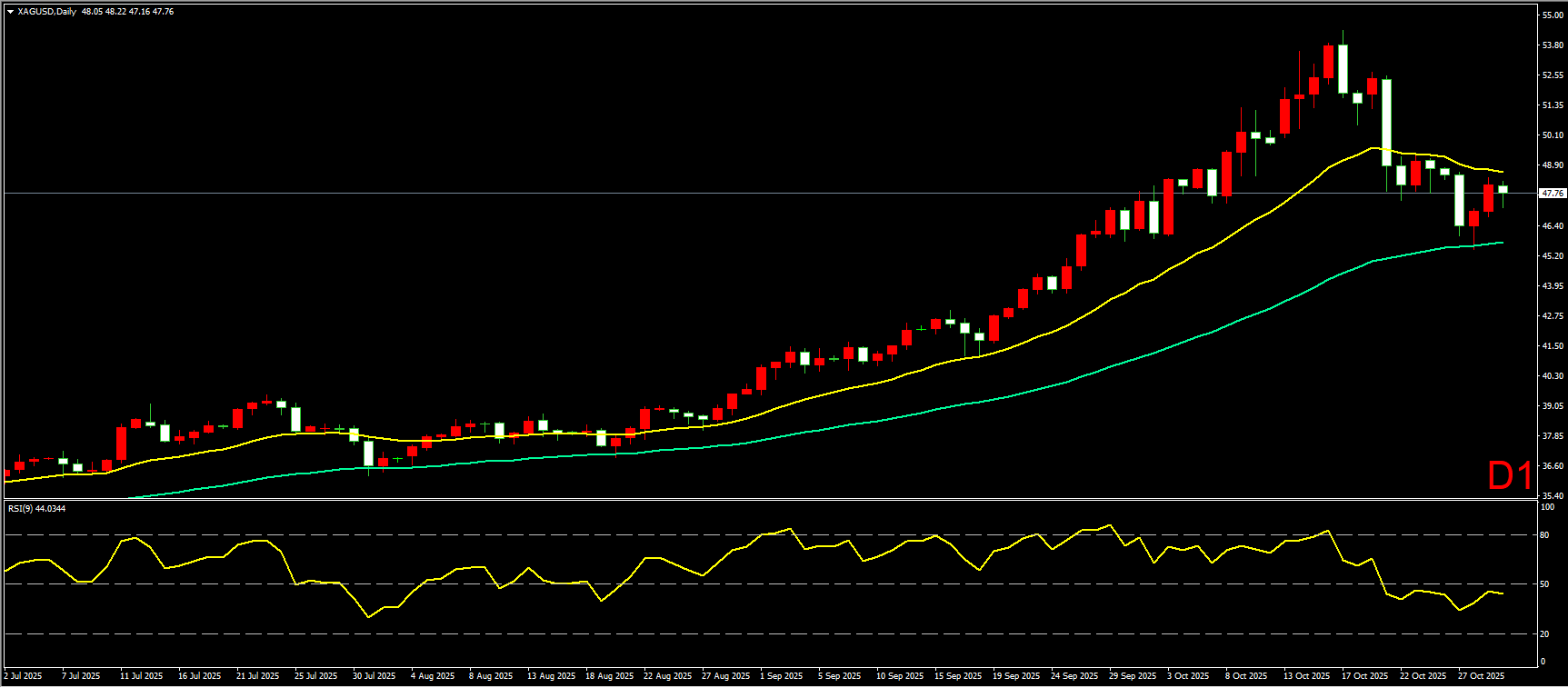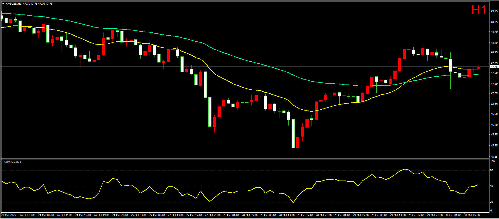 小时图上,昨日白银从20EMA均线逐步震荡走高,早盘就一举突破60EMA均线,打开反弹空间,最高摸到48.36附近。不过,随着临近美联储会议,白银也逐步震荡回落,但仍维持在均线上方,而美联储降息落地后,黄金大幅跳水,但白银仅略微跌破均线,很快又回到均线上方,整体跌幅不大,短线形态表现较强。预计白银日内将围绕均线上下震荡蓄力,因此在操作上建议,先以高抛低吸震荡操作。