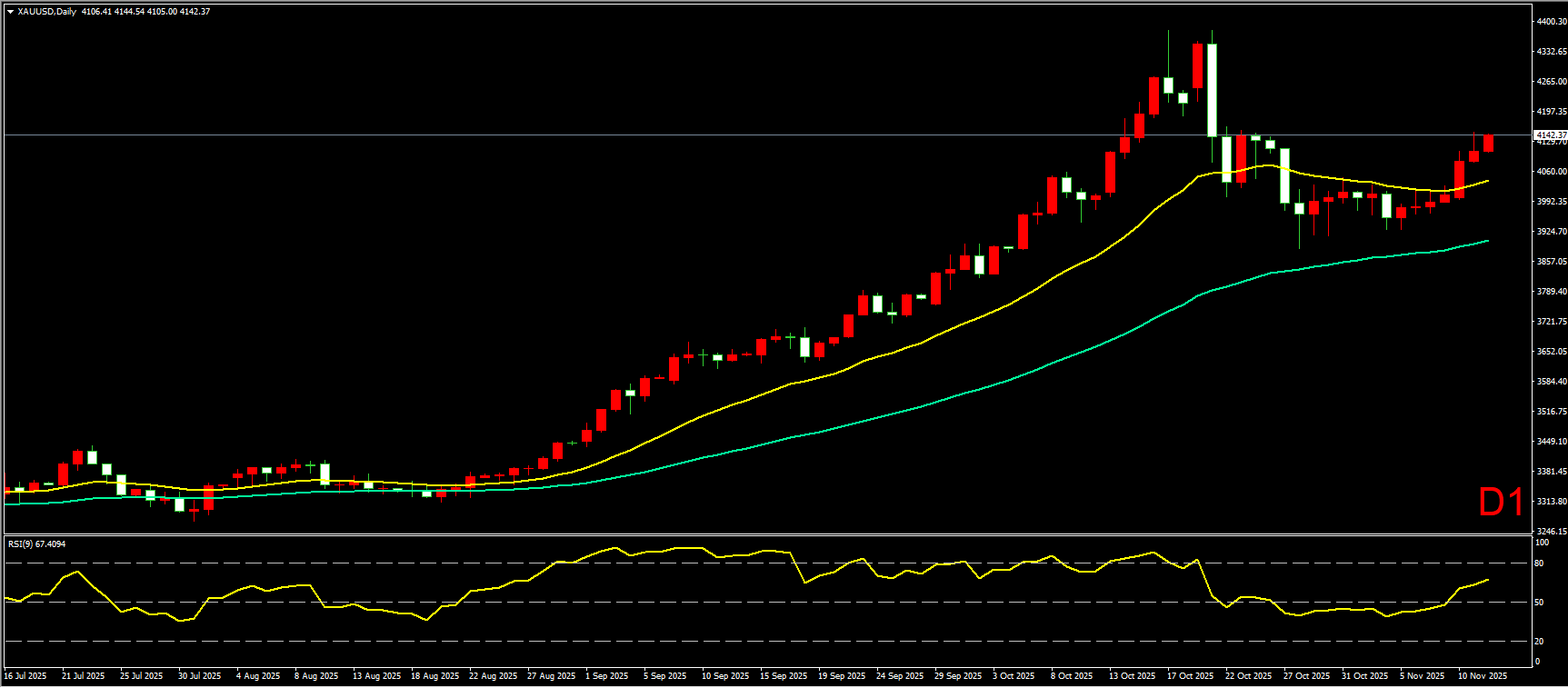 小时图上,昨日黄金开盘延续前一日的上涨节奏,持续冲高至4148左右后转为横盘震荡,而尾盘阶段,金价一度快速跳水,跌穿20EMA均线,最低跌至4097附近,随后逐步企稳,目前已重回昨日高点附近,将日内跌幅完全收复。短线形态上看,黄金形成小V型说明多头依旧强势,但若今日冲高回落,RSI指标容易形成顶背离形态,届时金价短线或再度震荡休整。因此在操作上建议,先继续保持逢低做多为主,若日内新高后再跌破20EMA均线,则平多转震荡。