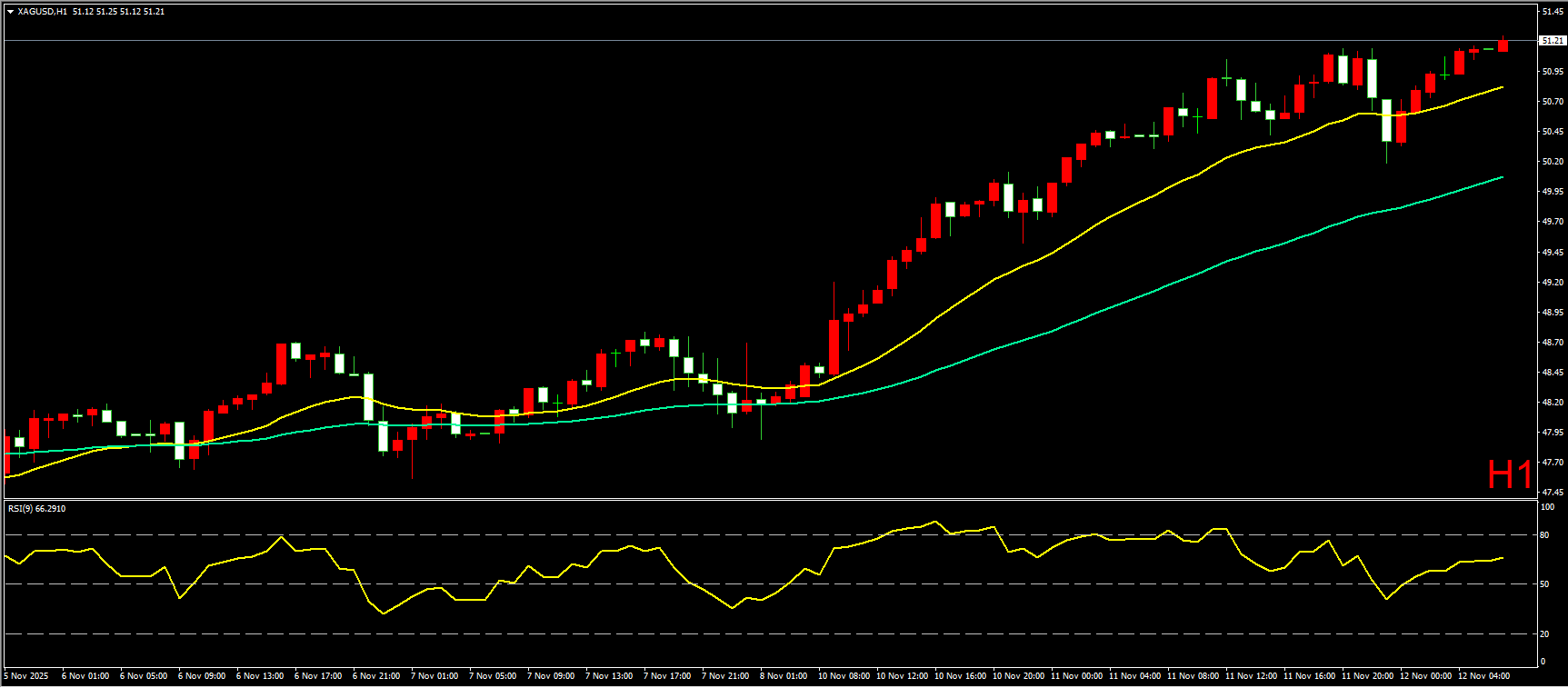 小时图上,昨日白银在开盘后延续前日多头趋势,日内继续保持震荡上行态势,但RSI指标有顶背离形态出现,导致尾盘阶段一度跳水跌破20EMA均线,最低跌至50.19附近。不过白银多头依旧强劲,很快将跌幅收复,并在隔夜走势中再创反弹新高。短线形态上,白银逼近上方关键压力,短线涨势有所放缓,但趋势仍未改变,因此日内仍建议先以逢低做多为主,但要小心日内再度出现冲高回落形态,进而导致白银由上涨趋势转为横盘震荡。